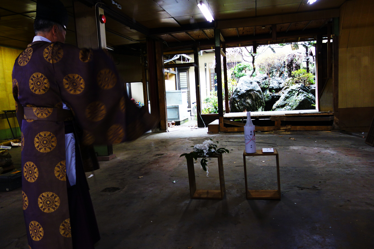本日は朝から沓谷の愛宕神社から神主さんをお呼びして、取り壊し前の清祓いの儀。